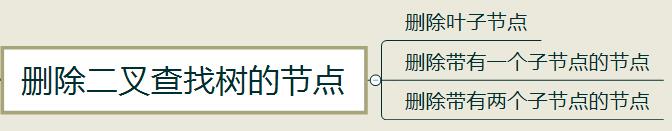 删除节点的操作相对查找和插入要相对复杂一些,主要考虑以下三种情况(前两种情况操作较为简单,第三种较为复杂)