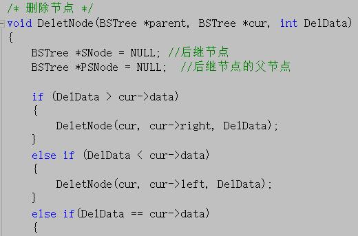 2 void DeletNode(BSTree *parent, BSTree *cur, int DelData)