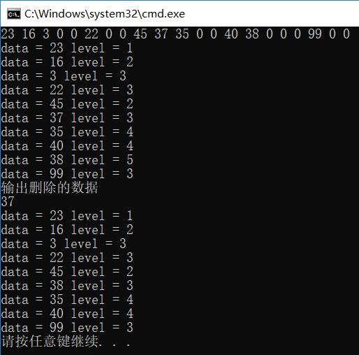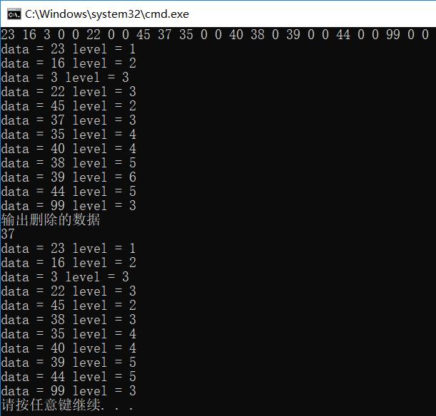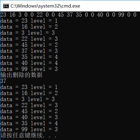 因为查找节点和插入节点都是在已经构建好二叉查找树的前提下才能进行的,在删除节点的时候才涉及到调整二叉树的操作,所以这里先以前序遍历的顺序直接输入一个二叉查找树,代码如下