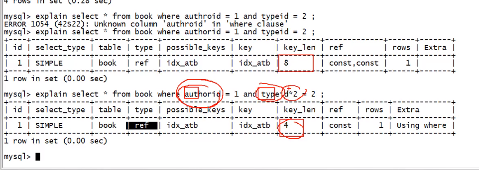 c.不要在索引上进行任何操作(计算,函数,类型转换)否则索引失效