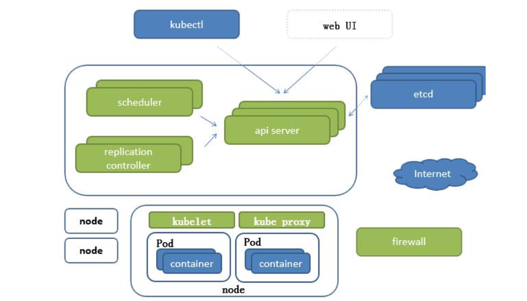 - kubelet 负责维护容器的生命周期,同时也负责Volume(CVI)和网络(CNI)的管理;负责介绍任务,选择合适的节点进行分配任务;直接跟容器引擎交互实现容器的生命周期管理