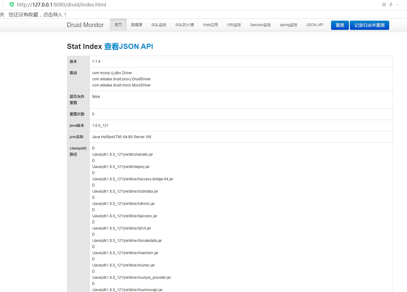 servletRegistrationBean.addInitParameter("resetEnable", "false");//是否可以重置数据源