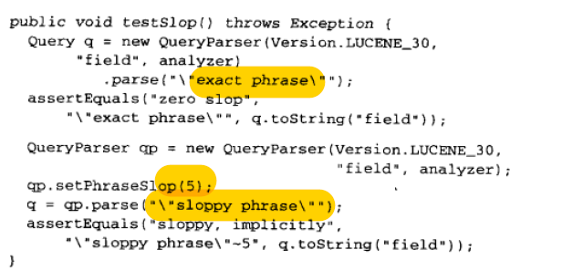 - PhraseQuery 松散的,不一定按照顺序