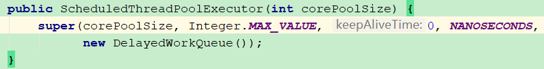 核心线程数为构造参数大小,最大线程数为Integer.MAX_VALUE,最大空闲时间0,任务队列使用DelayedWorkQuquq。