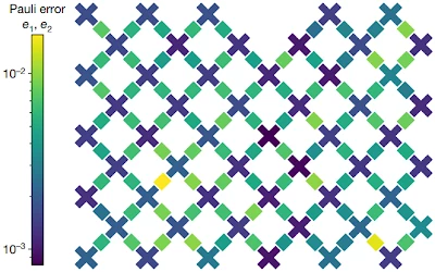 量子优越性实验的成功归功于谷歌改进了具有增强并行性的双量子比特门,即使同时操作多个门,也能可靠地实现记录性能。谷歌使用一种新型的控制旋钮来实现这一性能,该旋钮能够关闭相邻量子比特之间的交互。此举大大减少了这种多连通量子比特系统中的误差。此外,通过优化芯片设计来降低串扰,以及开发避免量子比特缺陷的新控制校准,谷歌进一步提升了性能。