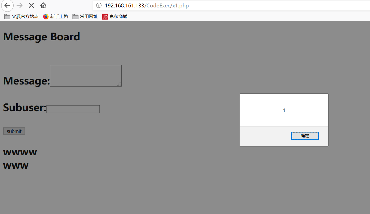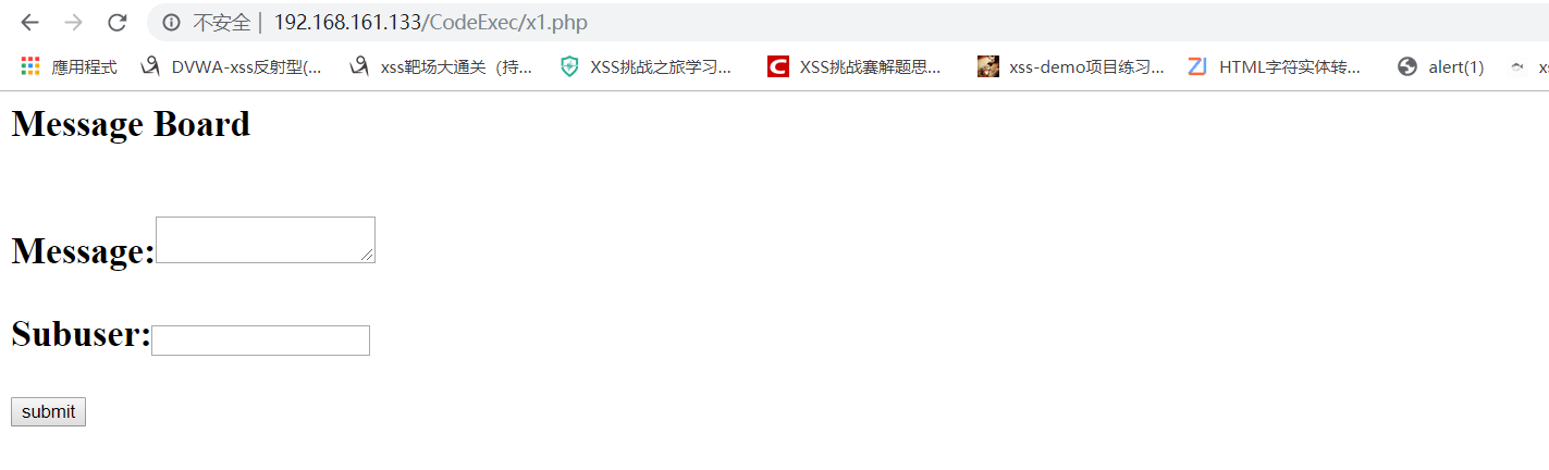这个页面采用POST提交数据,生成、读取文本模拟数据库,提交数据之后页面会将数据写入sql.txt,再打开页面时会读取sql.txt中内容并显示在网页上,实现了存储型xss攻击模拟,页面展示效果: