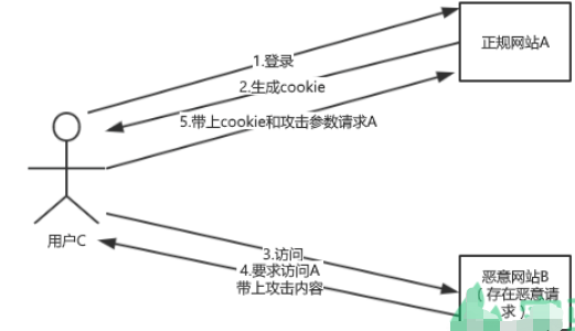 页面B上面存在攻击者事先写好的恶意链接,并诱使我们点击(比如做成图片连接):