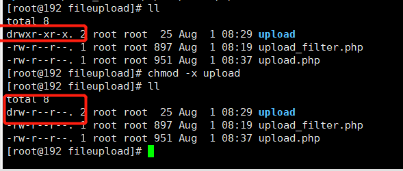 注意:这里需要先给upload文件分配权限(命令:chmod 755 upload)
