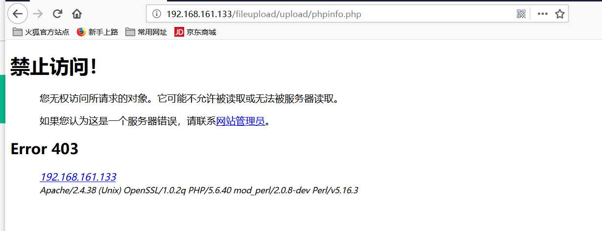 将upload目录设置为不可执行,再尝试加载之前上传的phpinfo.php: