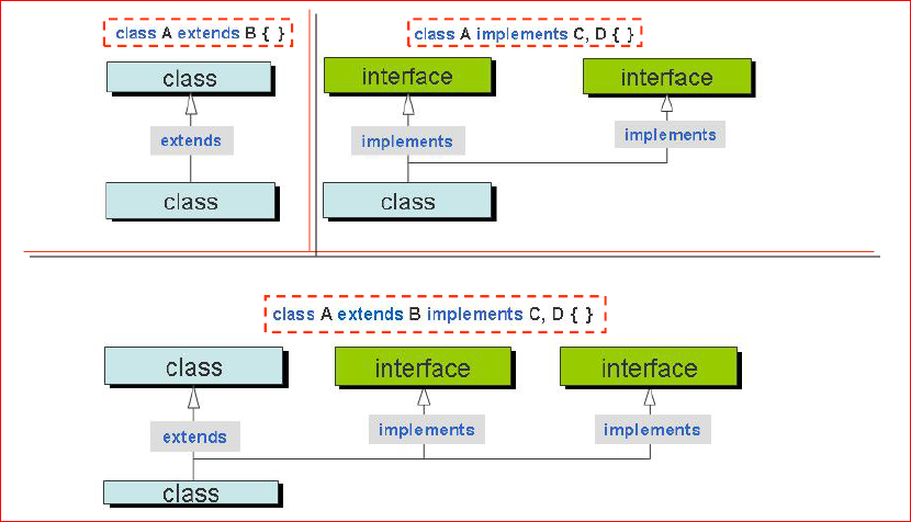 - 接口不是类分级结构的一部分,没有联系的类可以实现相同的接口