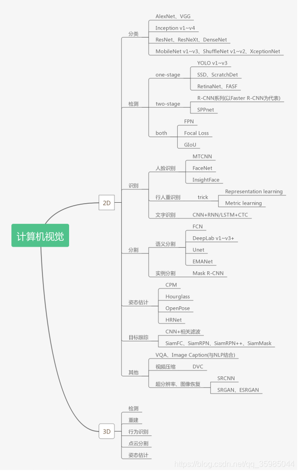 本文主要对CV方向深度学习相关的知识、资料进行介绍。DNN相关的模型在计算机视觉上有许多应用场景,大方向上大致分为2D和3D两类。