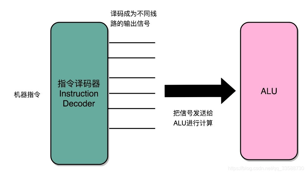 (5)在指令寄存器后面,可以再跟一个译码器。这个译码器不再是用来寻址的了,而是把拿到的指令,解析成opcode和对应的操作数。