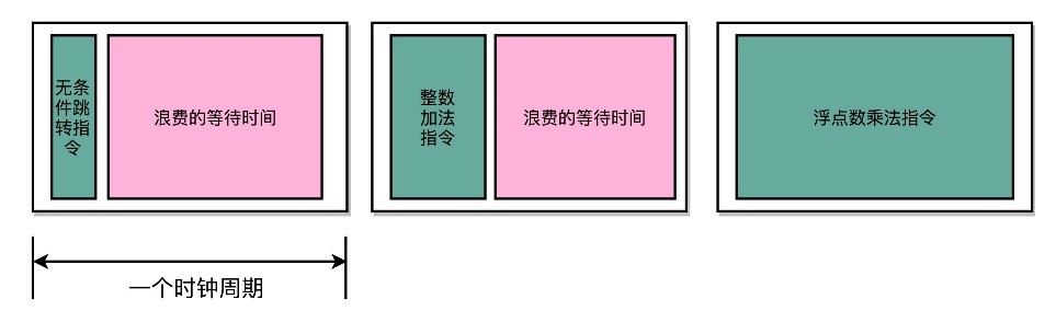 因为从内存里面读取指令相比从CPU缓存内读取要慢很多,所以如果使用单指令周期处理器,就意味着指令都要去等待一些慢速的操作。这些不同指令执行速度的差异,也正是计算机指令有指令周期、CPU周期和时钟周期之分的原因。因此,优化CPU的性能时,用的CPU都不是单指令周期处理器,而是通过流水线、分支预测等技术,来实现在一个指令周期里同时执行多个指令。