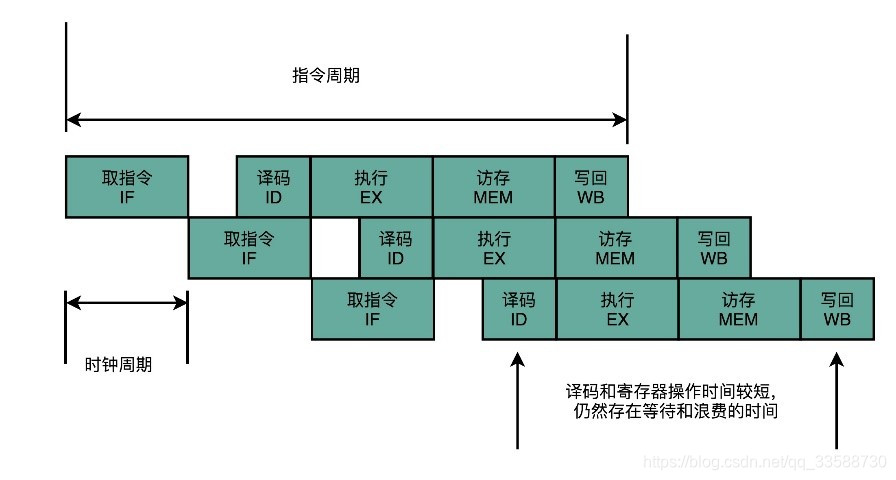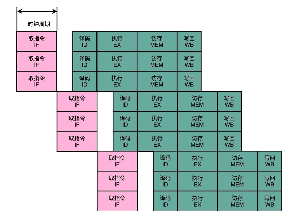 很显然,这样的设计有点浪费。因为即便只调用一条非常简单的指令,也需要等待整个时钟周期的时间走完,才能执行下一条指令。所以现代CPU都通过流水线技术进行性能优化,可以减少需要等待的时间。