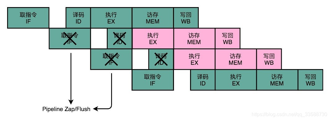 然而,过多增加流水线深度,在同主频下,其实是降低了 CPU 的性能。因为一个Pipeline Stage,就需要一个时钟周期。假设把任务拆分成31个阶段,就需要31个时钟周期才能完成一个任务;而把任务拆分成11个阶段,就只需要11个时钟周期就能完成任务。31个Stage的3GHz主频CPU,其实和11个Stage的1GHz 频CPU性能是差不多的。事实上,因为每个Stage都需要有对应的Pipeline寄存器的开销,这个时候,更深的流水线性能可能还会更差一些。