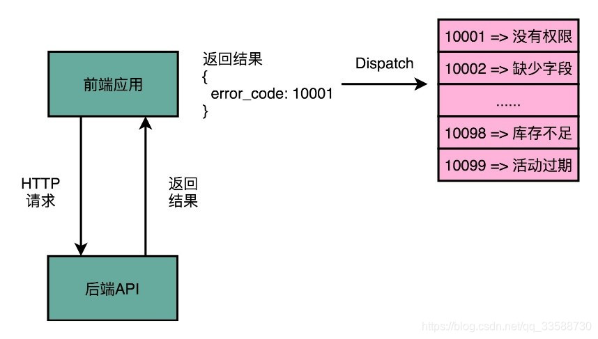CPU在拿到了异常码之后,会先把当前程序执行的现场,保存到程序栈里面,然后根据异常码查询,找到对应的异常处理程序,最后把后续指令执行的指挥权,交给这个异常处理程序,就像前后端开发中后端向前端的请求返回一个错误码一样,如下所示: