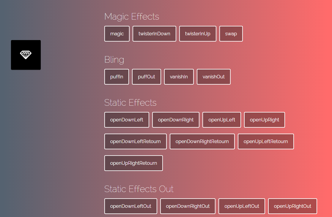 Hover.css是一套使用CSS3动画实现的Hover特效集锦,包含了: