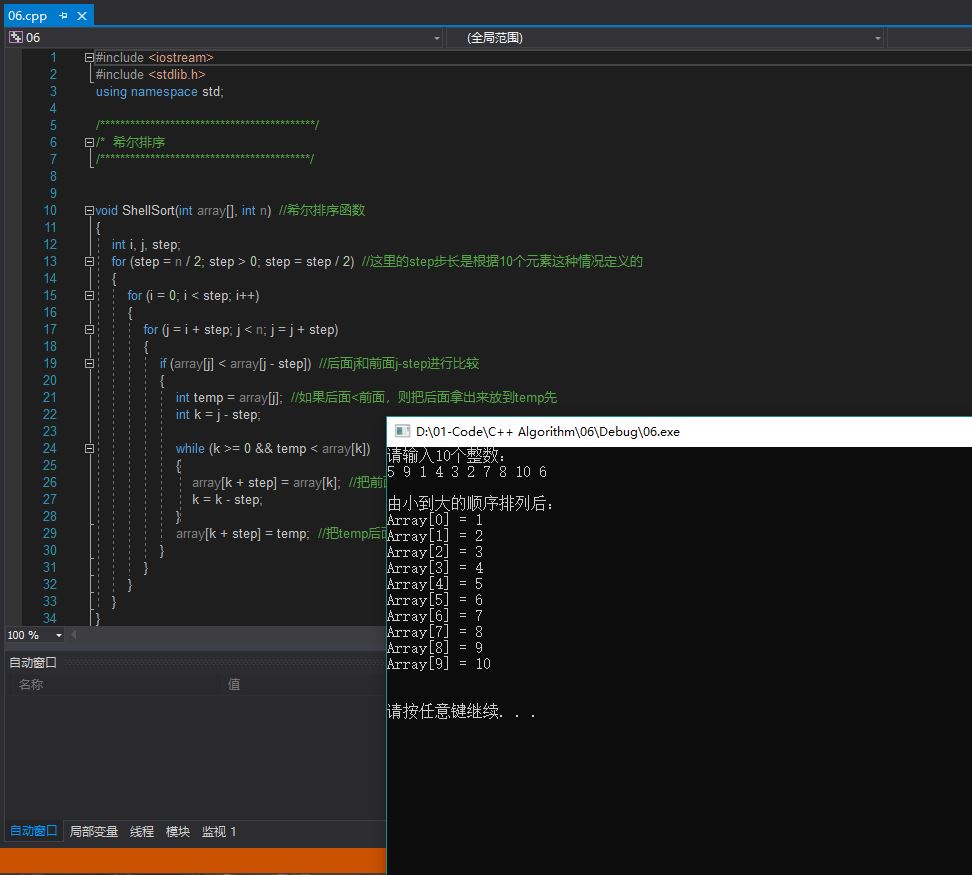 ShellSort(array, n); // 调用BubbleSort函数 进行比较