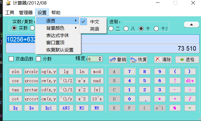 管理器可以记录我们输入的历史记录,常规菜单可以对整个界面的语言和背景颜色等等进行设置: