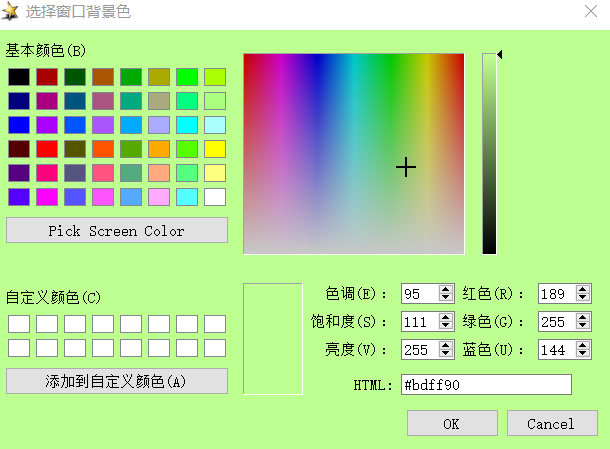 bgpal.setColor(QPalette::Base,QColor(red,green,blue));