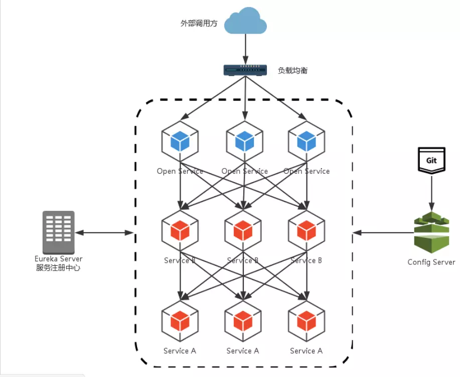 - 路由规则与服务实例的维护间题:外层的负载均衡(nginx)需要维护所有的服务实例清单(图上的OpenService)