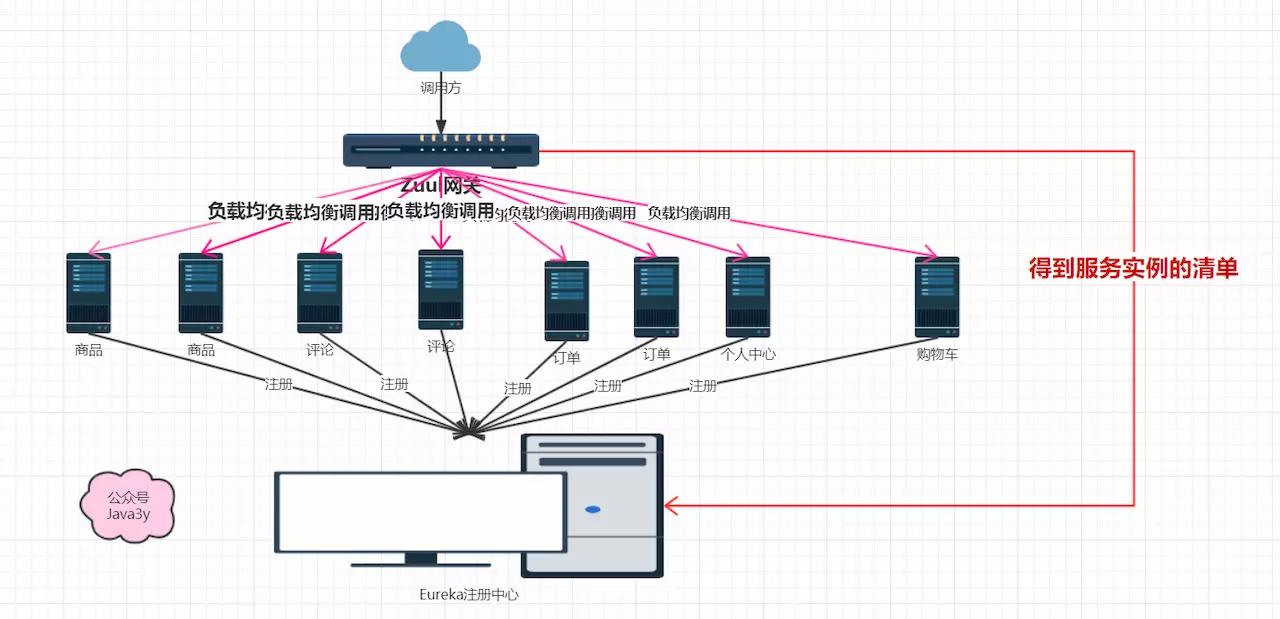 - SpringCloud Zuul通过与SpringCloud Eureka进行整合,将自身注册为Eureka服务治理下的应用,同时从Eureka中获得了所有其他微服务的实例信息。外层调用都必须通过API网关,使得将维护服务实例的工作交给了服务治理框架自动完成。