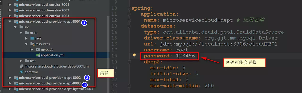 比如我们的Demo中,每个服务都写上相同的配置文件。万一我们有一天,配置文件中的密码需要更换了,那就得三个都要重新更改。