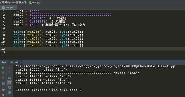 如: num01 02 03 04都是整数,num05是float,只有小数才有科学计数法