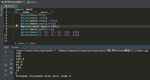 **abs(x) **返回数字的绝对值,如abs(-10) 返回 10