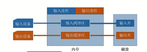 需要注意的是缓冲区的存在,输入设备要经过内存的输入缓冲区才能将数据预输入到磁盘的输入井