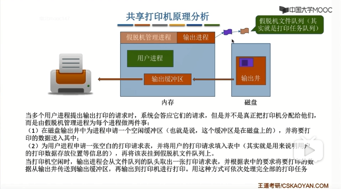 每当有进程要求使用打印机时,就为这个进程分配输出井中的存储空间,从而实现虚拟共享