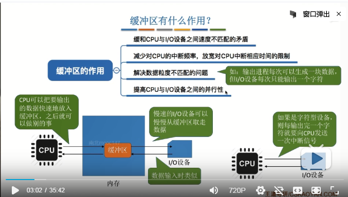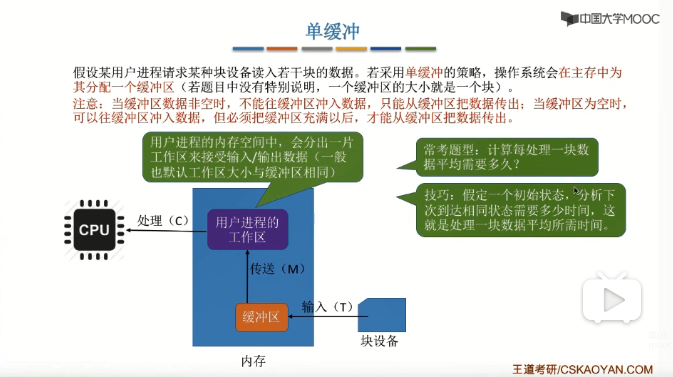 3 解决数据粒度不匹配 进程可能一次要输出一个块,但是IO设备一次只能输出一个字符,这样的话使用缓冲区就可以从CPU接收块,然后缓冲区一个字符一个字符的给IO设备。