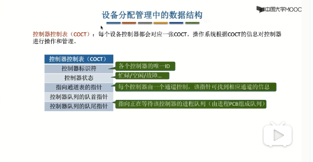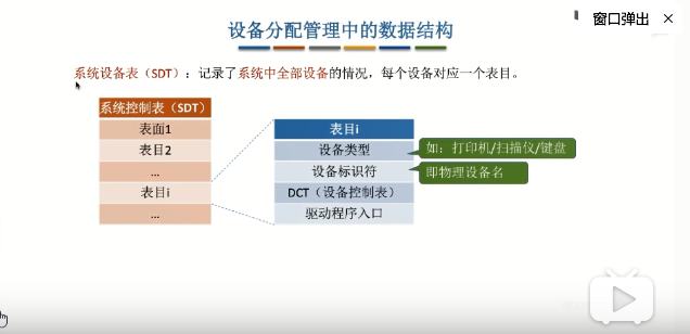 系统设备表记录了设备中的全部设备,每个表明中含有 设备控制表 这一项