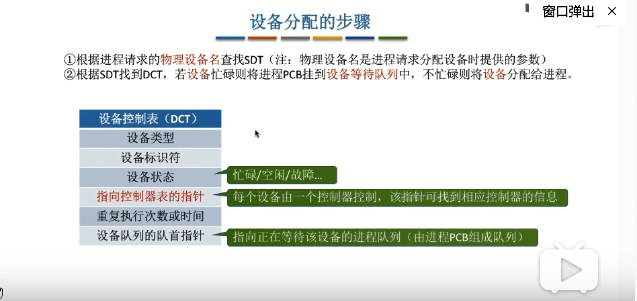 检测设备控制表的状态信息,如果空闲则分配给进程,如果忙碌则将进程挂到该设备的阻塞队列中。同时将对应的IO控制器控制表也分配给进程