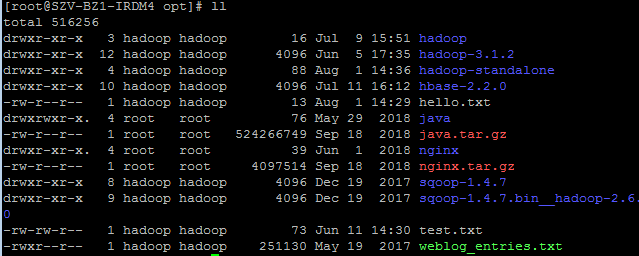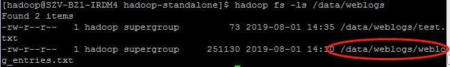 hadoop fs -ls /data/weblogs/weblog_entries.txt