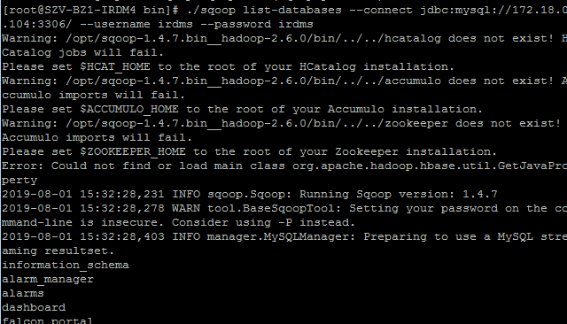 ./sqoop list-databases --connect jdbc:mysql://localhost:3306/ --username root --password 123456