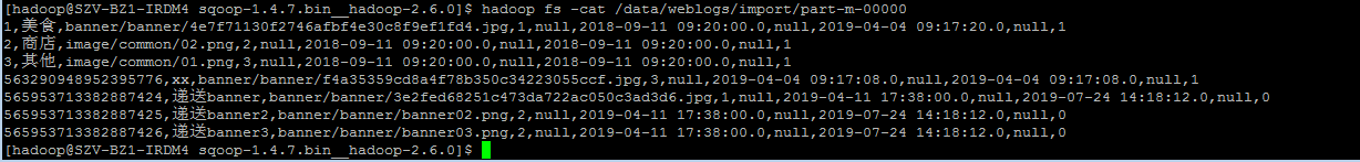 ./bin/sqoop import --connect jdbc:mysql://localhost:3306/hive --username root -P --table version --target-dir /data/weblogs/import --delete-target-dir --class-name version --bindir /opt/sqoop_1.4.7_bin_hadoop/bin