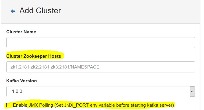 Cluster Zookeeper hosts: 协调kafka配置信息的zk地址