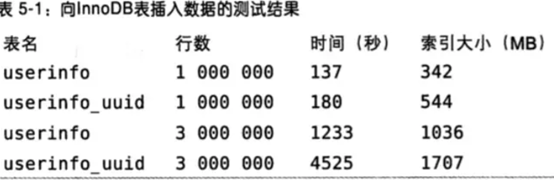 图片来源于《高性能MySQL》: 其中默认后缀为使用自增ID,_uuid为使用UUID为主键的测试,测试了插入100w行和300w行的性能.