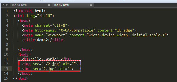 根目录下有demo1和images/1.jpg,demo1下有index1.html文件和demo1.1文件夹。demo1.1下有index2.html和2.jpg图片文件。