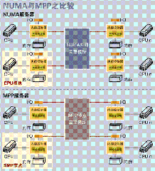 从架构来看, NUMA 与 MPP 具有许多相似之处:它们都由多个节点组成,每个节点都具有自己的 CPU 、内存、 I/O ,节点之间都可以通过节点互联机制进行信息交互。那么它们的区别在哪里?通过分析下面 NUMA 和 MPP 服务器的内部架构和工作原理不难发现其差异所在。