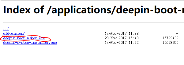 下载地址:http://cdimage.deepin.com/applications/deepin-boot-maker/windows/ ,下载我下面圈着的红色即可