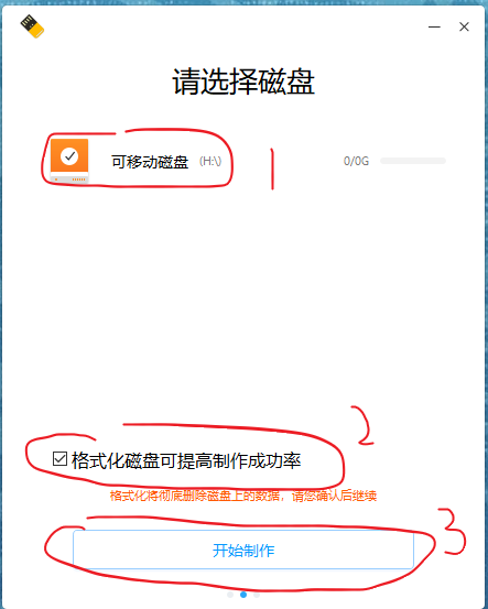 如图按照1、2、3点击等待数分钟就制作好系统U盘咯