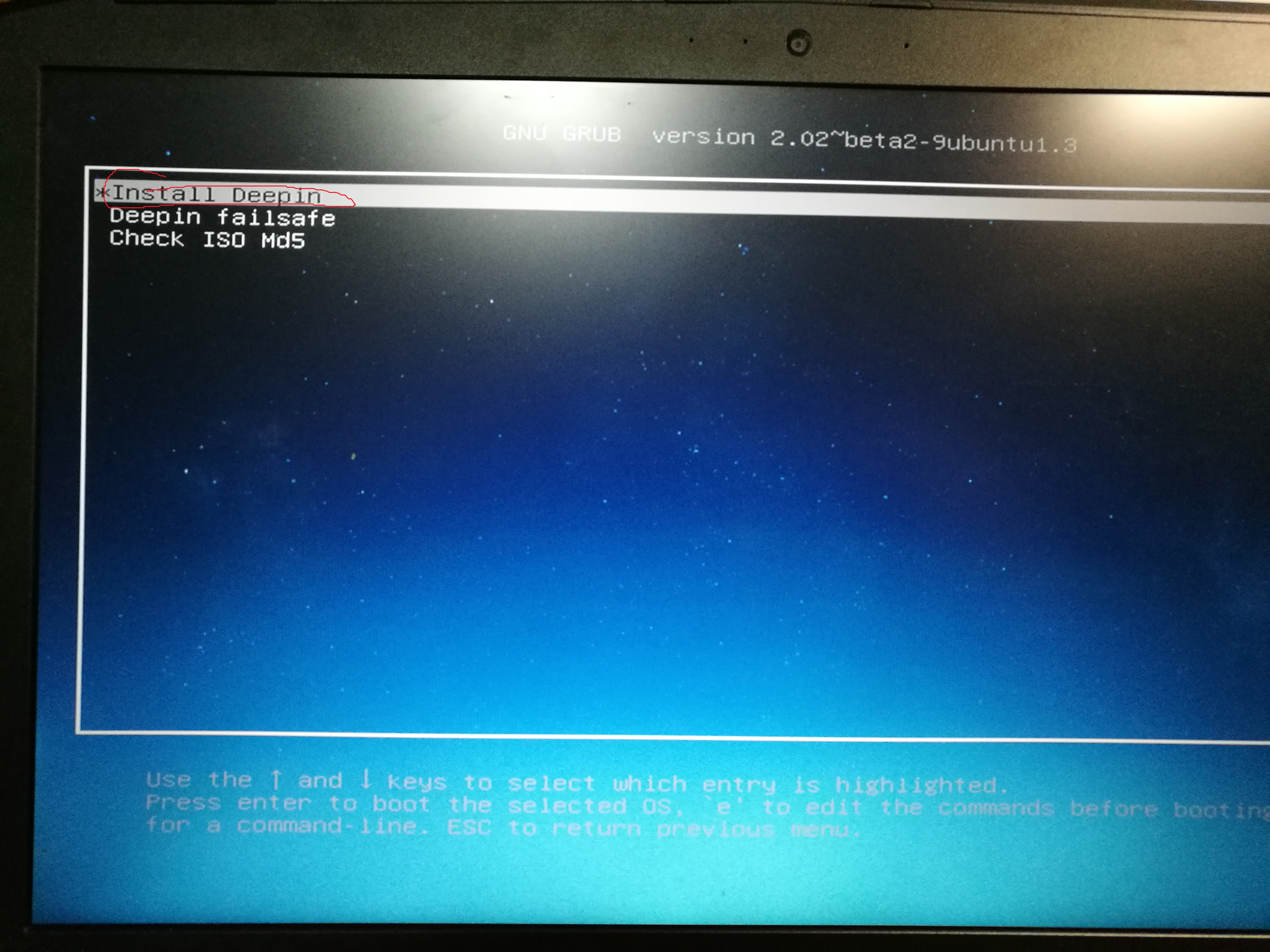 (不过我在回车后出现一个error,回车后先是正常的出现了deepin的图标,然后卡住就出现了很多行英文,有一句是couldn't get uefi db list等,后来我重启将U盘插到了USB2.0口上,顺利安装完成,这是安装Linux可能出现的一个问题不过是小概率问题,以前在安装黑苹果macOS时也有类似问题。)