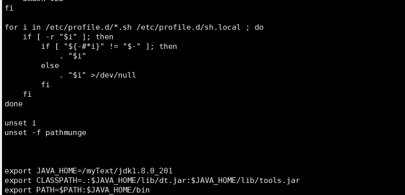 export JAVA_HOME=/myText/jdk1.8.0_201