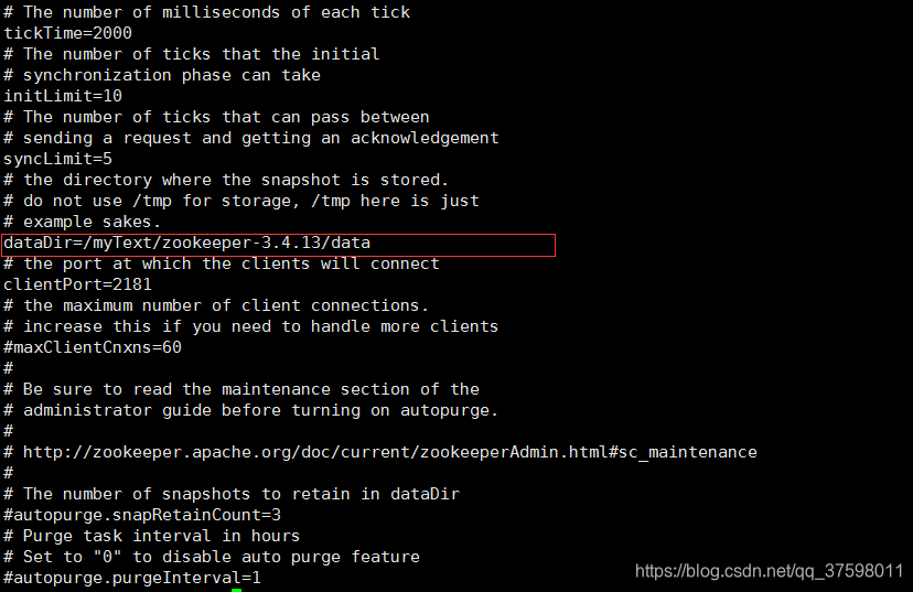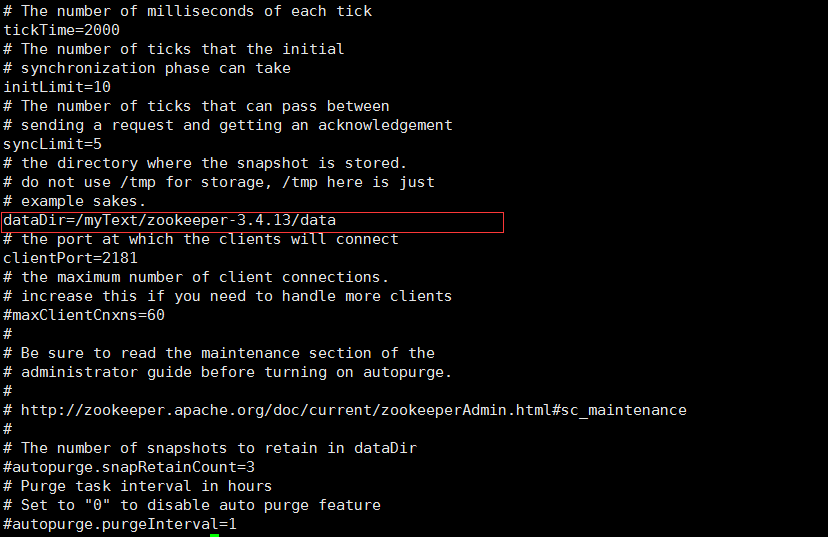 修改zoo.cfg中dataDir路径为刚刚创建的data: