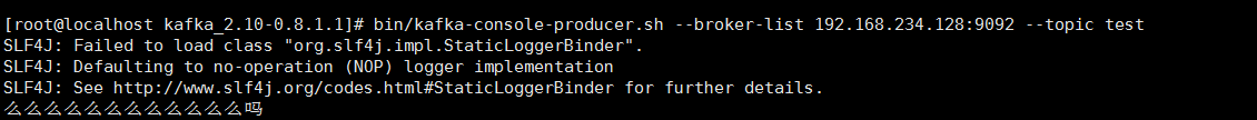 bin/kafka-console-producer.sh --broker-list 192.168.234.128:9092 --topic test