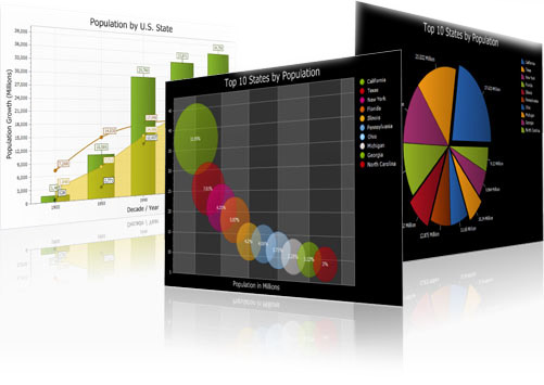 现在的应用对于数据可视化也非常重要,Xtreme Toolkit Pro居然提供了一个图表组件,以前我们都是用系统自带的MSChart组件,这里边提供的Chart Pro支持的图表种类非常多,而且配色特别漂亮。