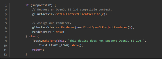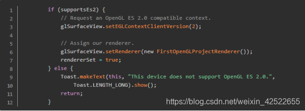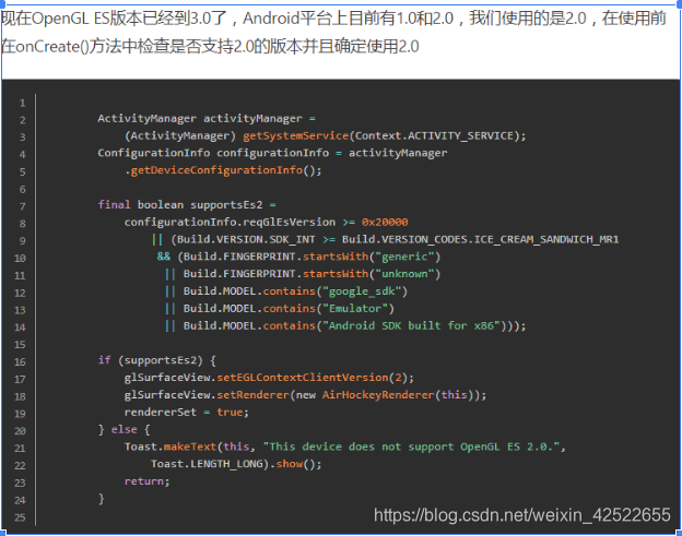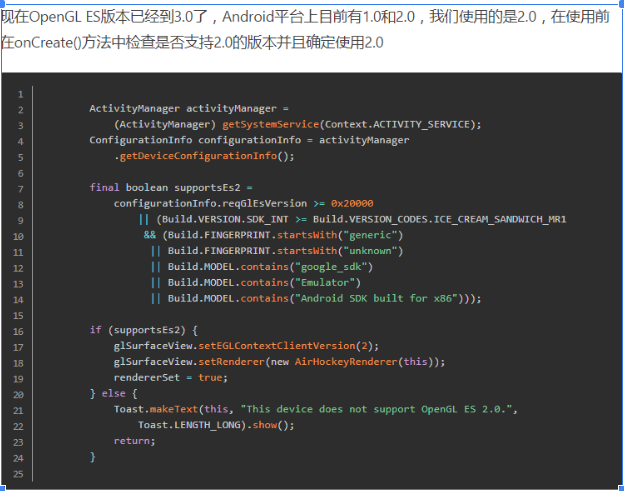 2)“configurationInfo.reqGlEsVersion >= 0x20000” // 检测opengl是否支持2.0