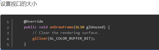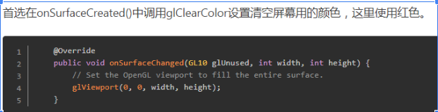 在onDrawFrame()中调用glClear()来清空屏幕颜色,再调用glClearColor()中定义的颜色渲染到整个频幕上